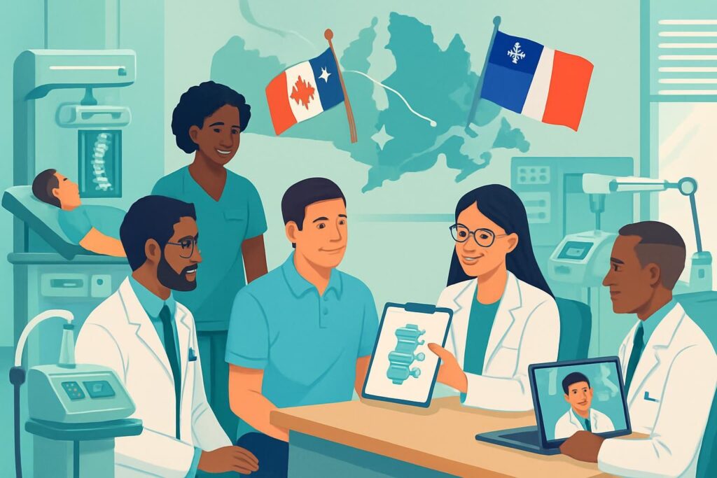 Pour faciliter votre prise de décision et votre parcours, nous vous invitons à consulter les ressources suivantes qui détaillent des perspectives internationales et des innovations en France. Exemple d’articles sur les parcours et les avancées en chirurgie du dos qui ne remplacent pas nos voies non chirurgicales: Chirurgie du dos à Longueuil: innovation disponible en France et Chirurgie du dos à Trois-Rivières: innovation chirurgicale en France. Vous pouvez aussi découvrir nos ressources dédiées au parcours transatlantique et l’expertise de l’équipe TAGMED en France et au Québec: Soins spécialisés en France à Levis et Soins experts pour le rachis à Trois-Rivières.